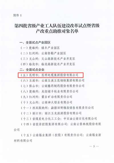 近日,云南省新時(shí)期產(chǎn)業(yè)工人隊(duì)伍建設(shè)改革工作協(xié)調(diào)領(lǐng)導(dǎo)小組辦公室下發(fā)相關(guān)通知,昆明電纜集團(tuán)股份有限公司憑借在產(chǎn)業(yè)工人隊(duì)伍建設(shè)領(lǐng)域的扎實(shí)積淀,成功入選第四批省級(jí)產(chǎn)業(yè)工人隊(duì)伍建設(shè)改革試點(diǎn)暨省級(jí)產(chǎn)改重點(diǎn)助推對(duì)象。
